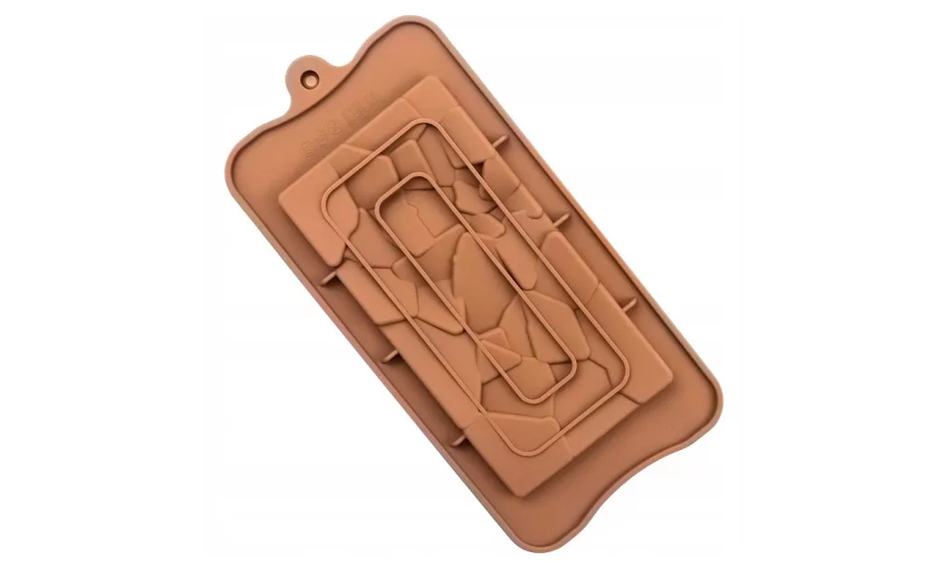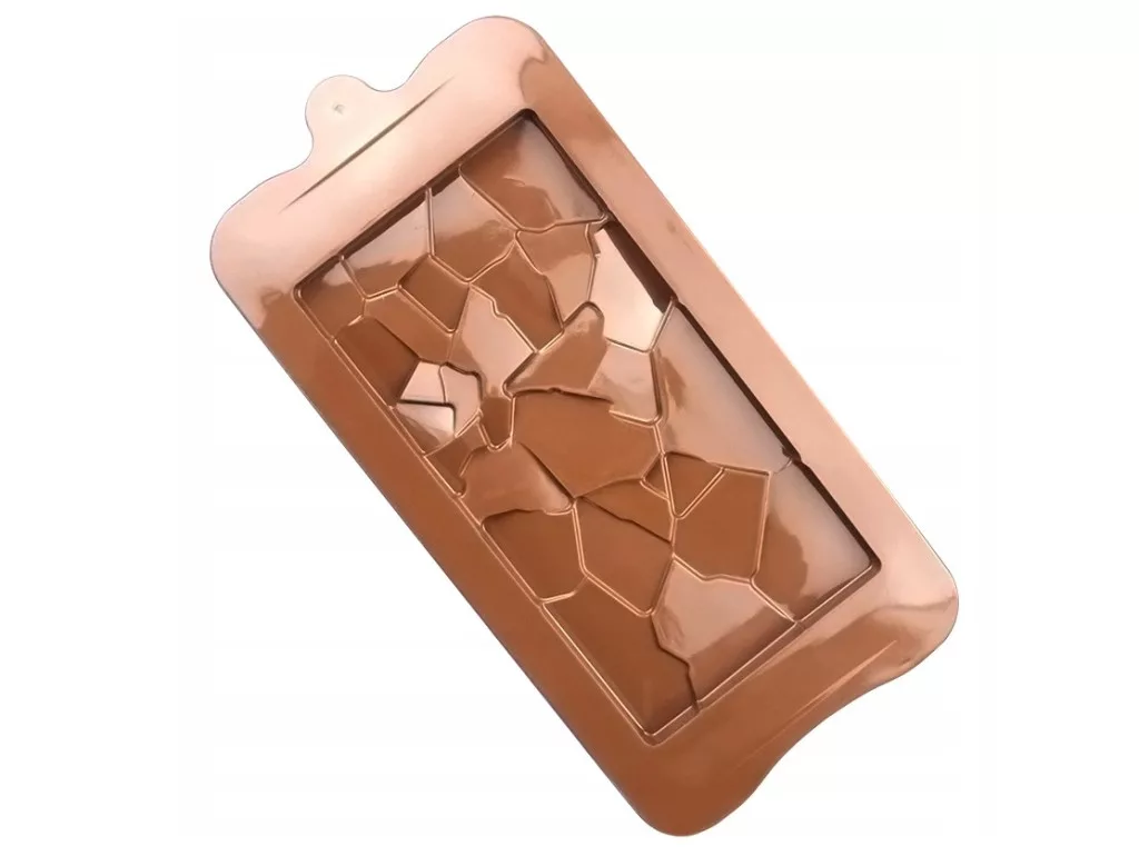 Kiváló minőségű szilikon forma, amelynek egyedi törthatású mintázata különleges megjelenést kölcsönöz a táblacsokoládéknak. Rugalmas és tartós anyagának köszönhetően könnyen használható, és a kész csokoládé sérülés nélkül eltávolítható belőle. Ideális kreatív édességkészítéshez, legyen szó ajándékról vagy saját desszertasztalról.