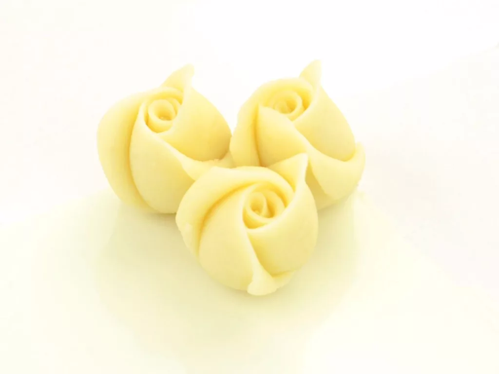 Kiszerelés: 4 darab kicsi marcipán rózsa