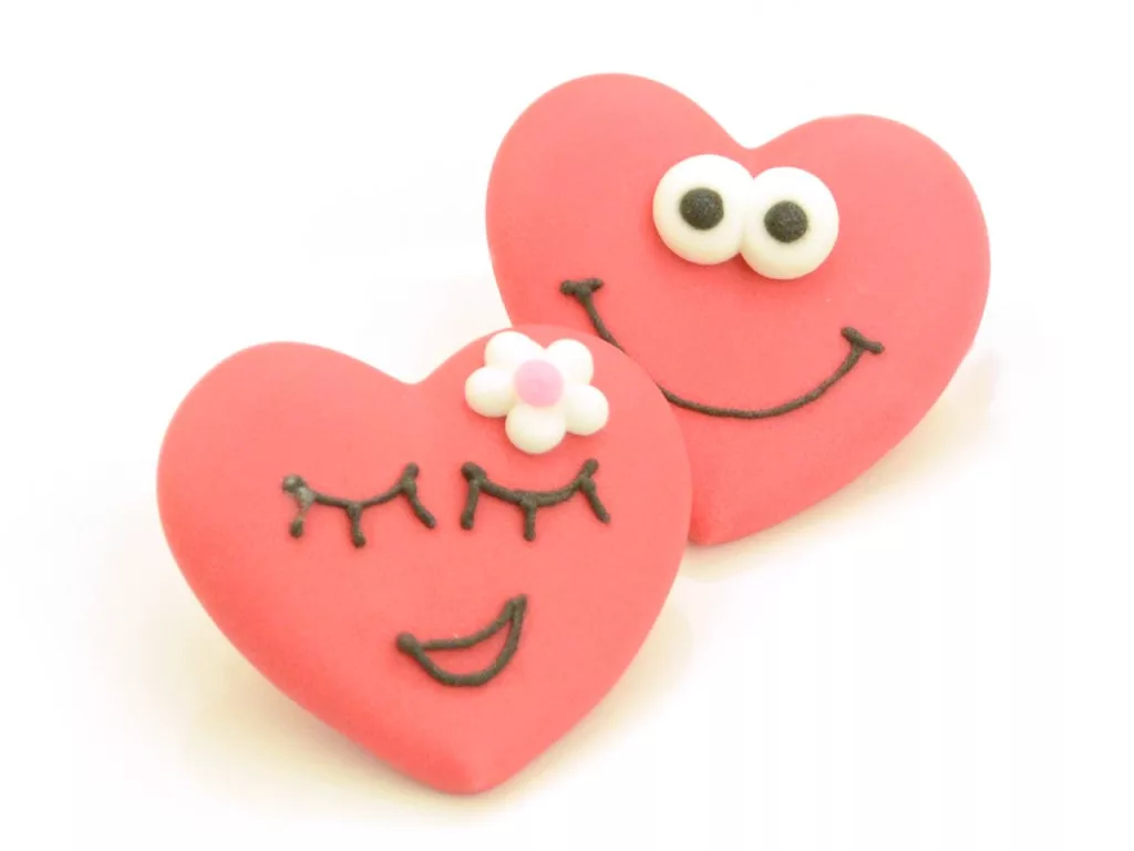 Aranyos szív alakú arcok cukorból 10 darabos kiszerelésben tortadíszítéshez. Piros szív figurák vidám arckifejezéssel - gyerekek kedvence! Méret: kb. 40 mm hossz, 35 mm szélesség, 10 mm magasság. Tökéletes Valentin-napra, szerelmes tortákra, anyák napjára, barátsági süteményekre. Azonnal használható, ehető díszítőelem prémium cukorból .