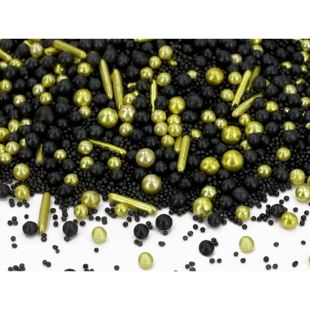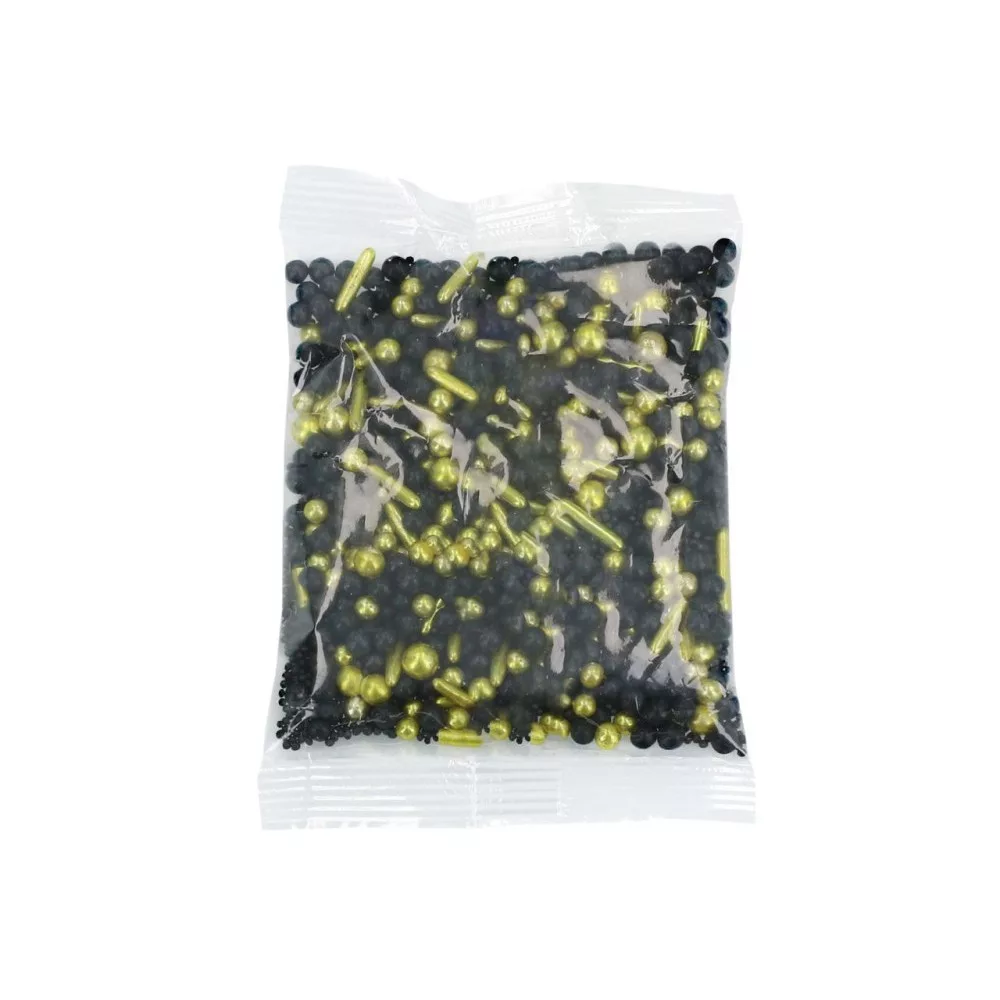 Fekete és arany színekben pompázó, prémium szórócukor keverék, amely elegáns megjelenést kölcsönöz tortáknak, desszerteknek és ünnepi édességeknek.