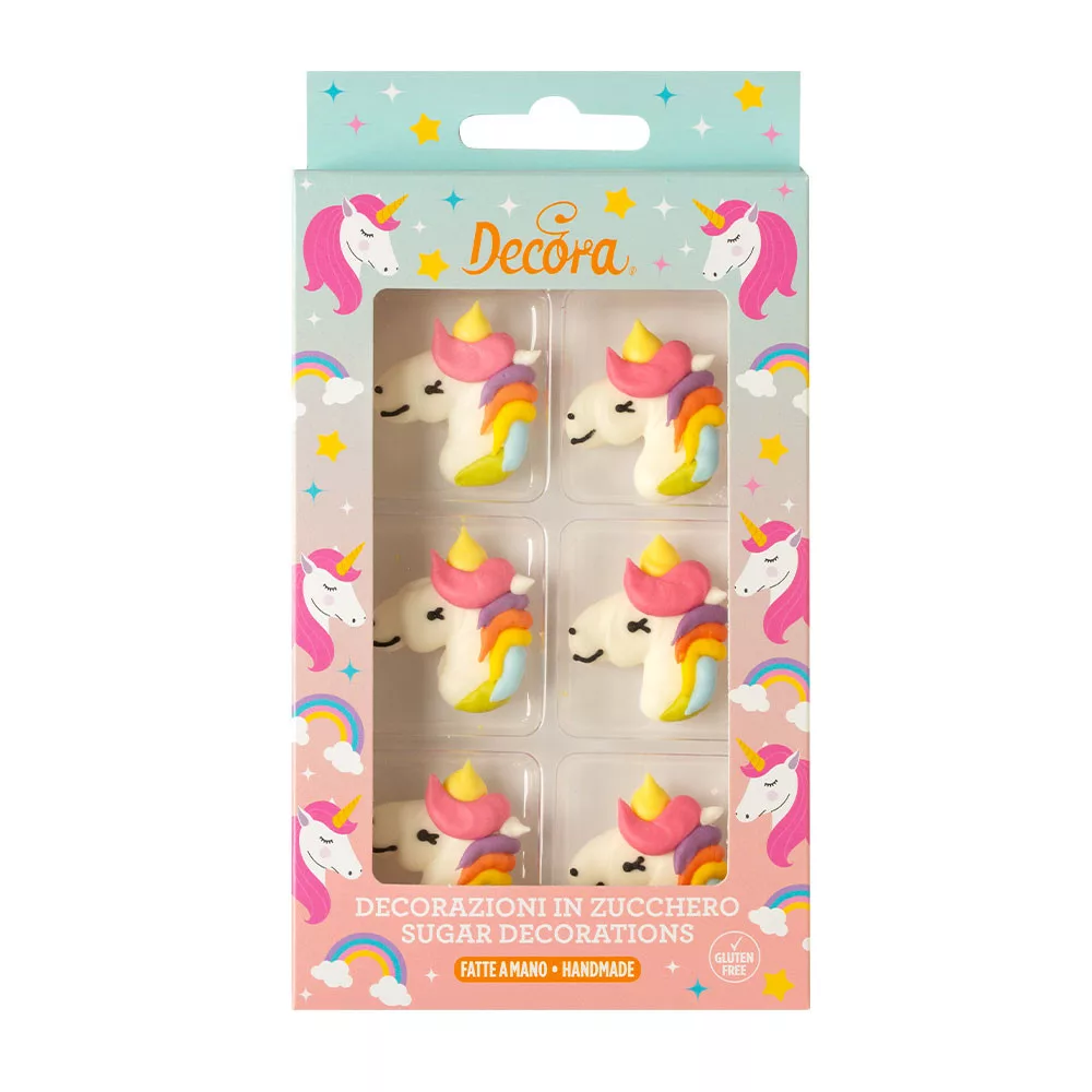 Ehető cukor unikornis tortadísz készlet torták és cupcake-ek díszítéséhez: kézzel készített, természetes eredetű színezékekkel, gluténmentes, tökéletes varázslatos parti hangulathoz.
