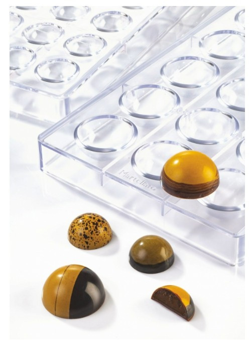 Professzionális, átlátszó PETG (BPA-mentes) csokoládéforma félgömbök készítéséhez a Martellatótól. Egy formával 15 darab, Ø 3,5 cm-es félgömb készíthető. Tartós, fényes felületet ad és könnyű kiemelést biztosít.