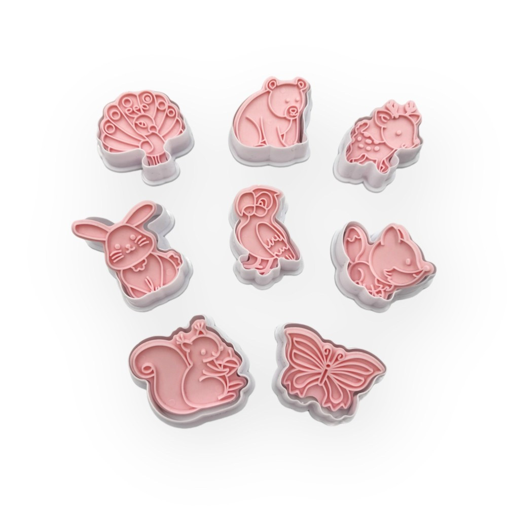 A kisállatokat ábrázoló nyomda kiszúró szett műanyagból készült, és 8 darabot tartalmaz. Ideális eszköz a kreatív sütemények készítéséhez, mivel könnyen használhatók és segítségükkel gyorsan és egyszerűen kivághatók és kinyomhatók a kisállatok mintái a tésztából vagy fondantból.