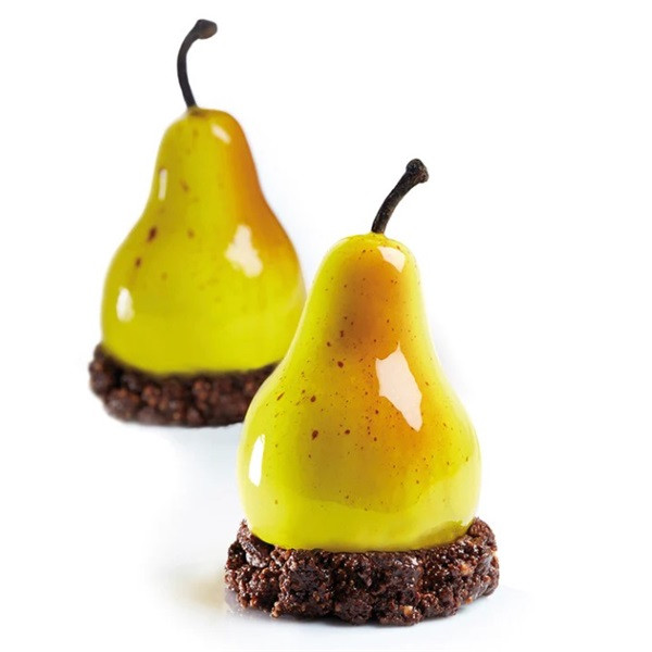 A Pavoni Realisztikus Körte szilikon forma élethű körte alakú desszertek készítéséhez ideális. A 20 adagos forma nagy kapacitást biztosít őszi és klasszikus gyümölcsös mousse-okhoz.