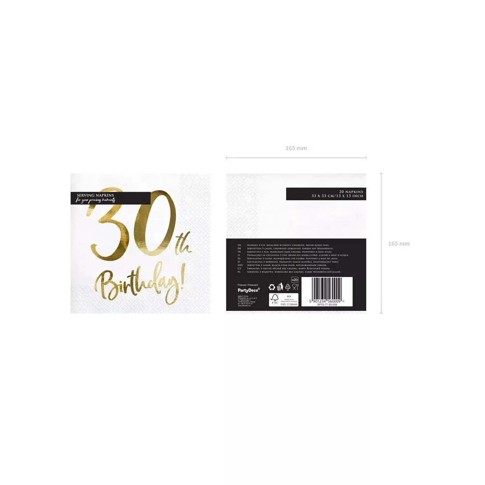 Papírszalvéta 30. születésnapra. Mérete: 33cmx33cm, 20db