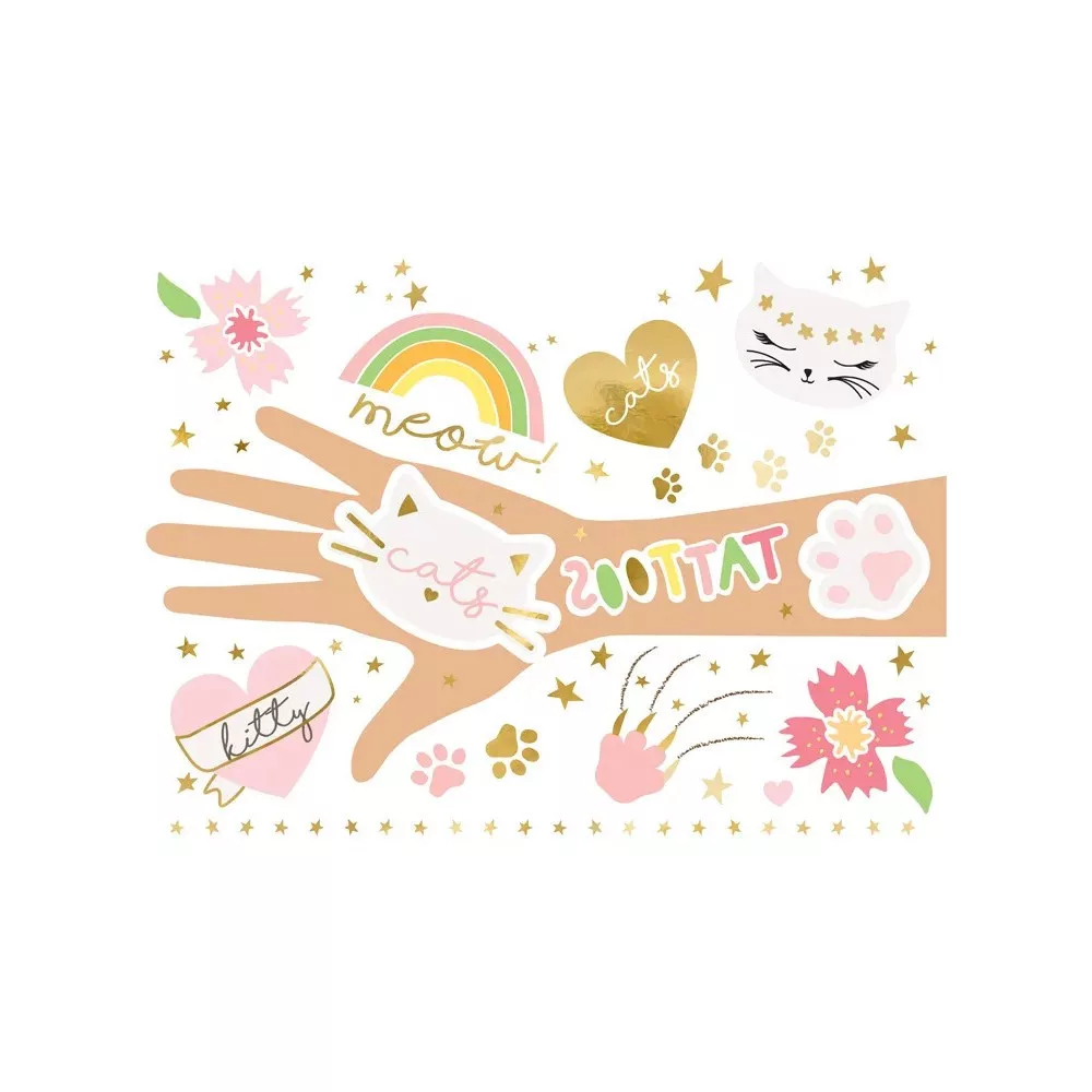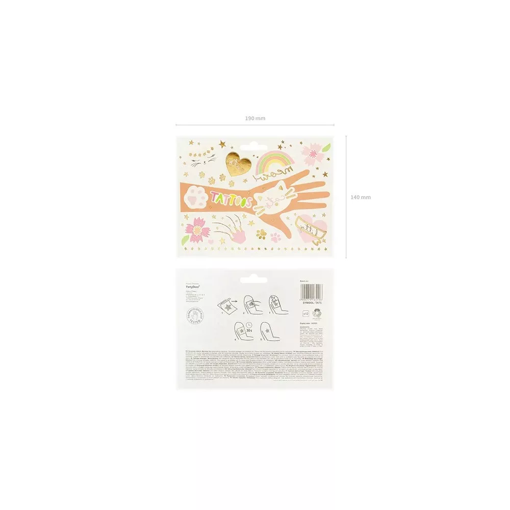 Ideiglenes cica tetoválások, minták és színek keveréke, a készlet 12 különböző mintát tartalmaz.