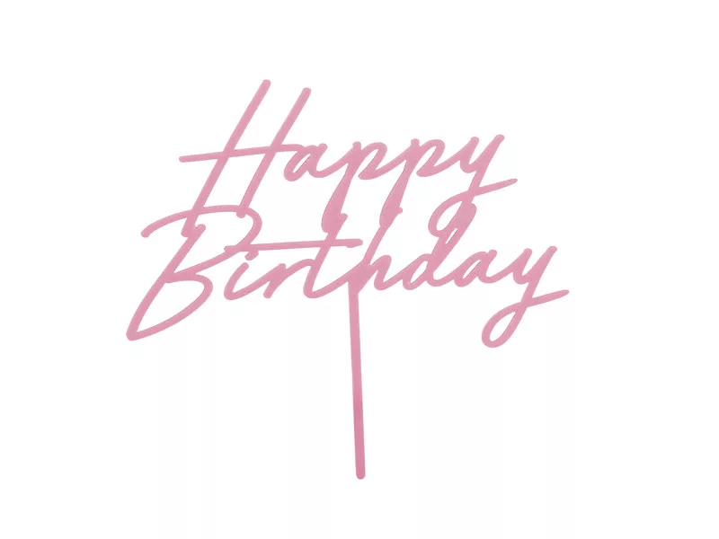 PartyDeco tortadísz beszúró, akril, Happy Birthday, rózsaszín, 16,5cm