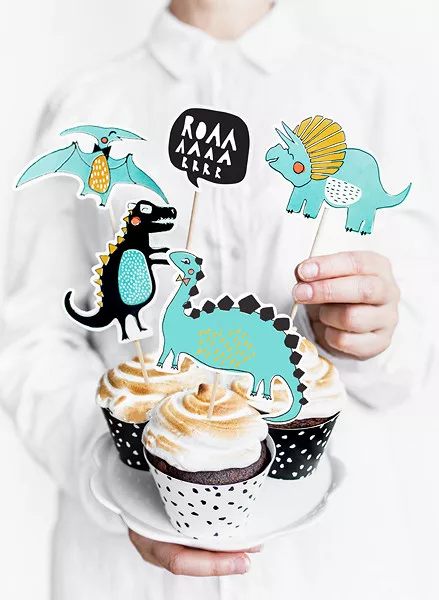 Vidám és színes dinoszaurusz témájú tortadísz beszúrók, amelyek tökéletes kiegészítői lehetnek születésnapi és tematikus buliknak. A szett 5 különböző mintájú dinoszauruszt tartalmaz, melyek magassága kb. 10,5–20 cm között változik.