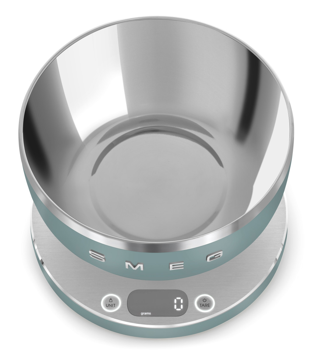 A Smeg digitális konyhai mérleg tökéletes kiegészítő azok számára, akiknek fontos a pontosság, a stílus és a kényelem a konyhában. Könnyű és letisztult kialakítása, mely szálcsiszolt alumínium panellel és matt színű felülettel rendelkezik, igazi design tárggyá teszi.