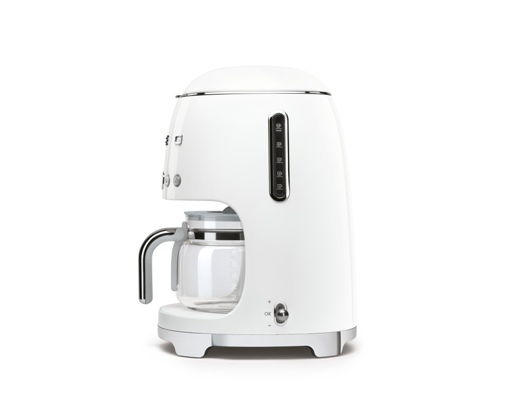 A Smeg DCF02 filteres kávéfőző lehetővé teszi, hogy finom aromájú, gazdag ízvilágú kávét készíthess, az aroma intenzitásának megválasztásával, hogy a legkifinomultabb ízlést kedvelők és az intenzívebb ízeket keresők is kielégíthessék igényeiket.