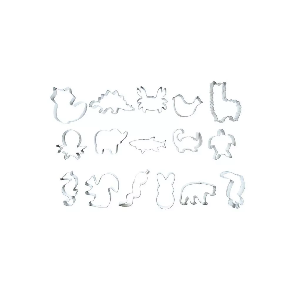 16 vadállat témájú sütemény kiszúró (Láma, teknős, kígyó, elefánt, dinoszaurusz,...), hogy a képzeleted szabadon szárnyalhasson és gyönyörű kis sütiket készíthess..Anyag: élelmiszeripari minőségű ónlemez.Méretek: 8,5 x 10 x 2 cm-ig.Tisztítási utasítások: Első használat előtt, majd minden használat után mossuk el meleg vízben és szárítsuk meg.