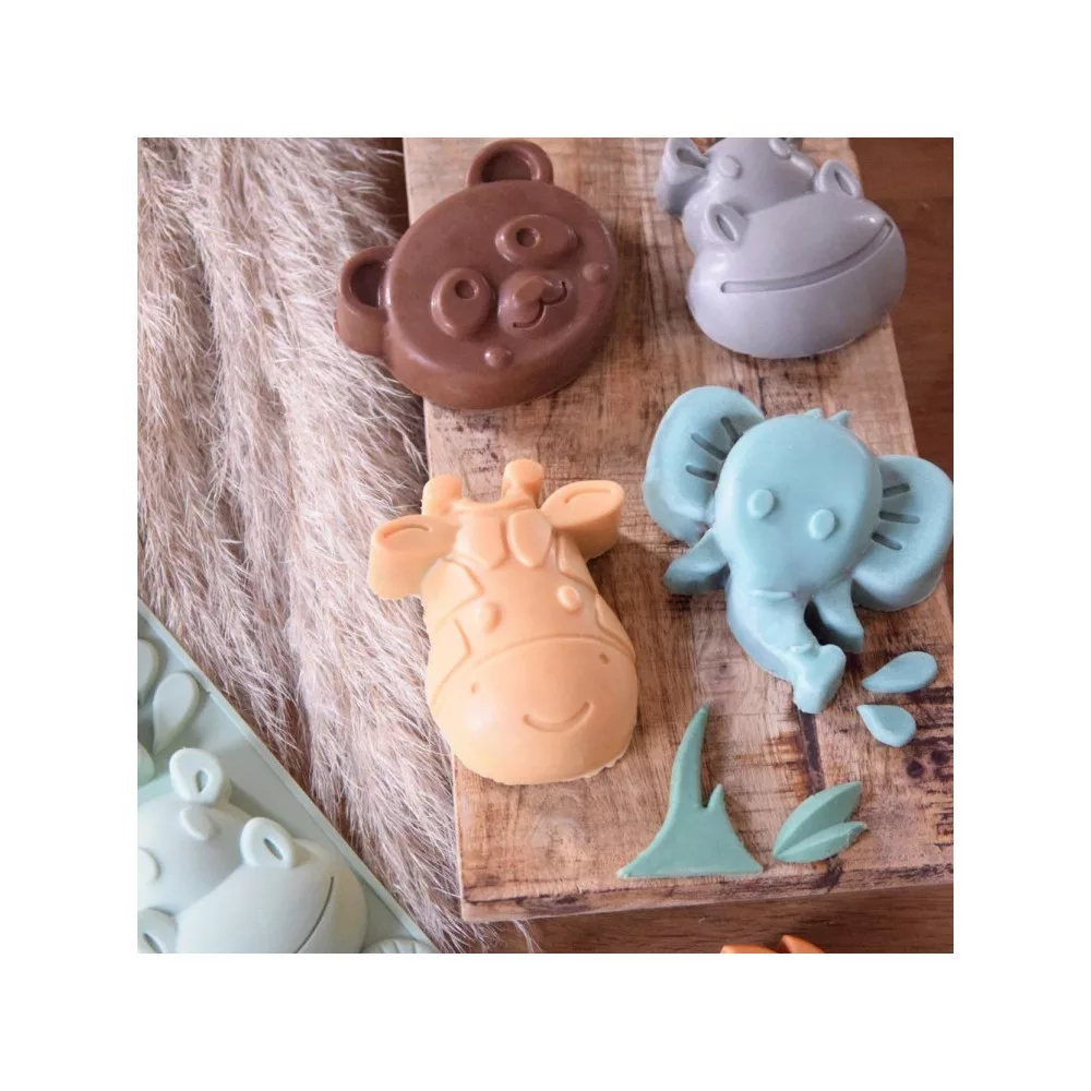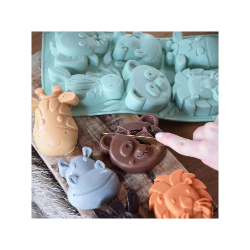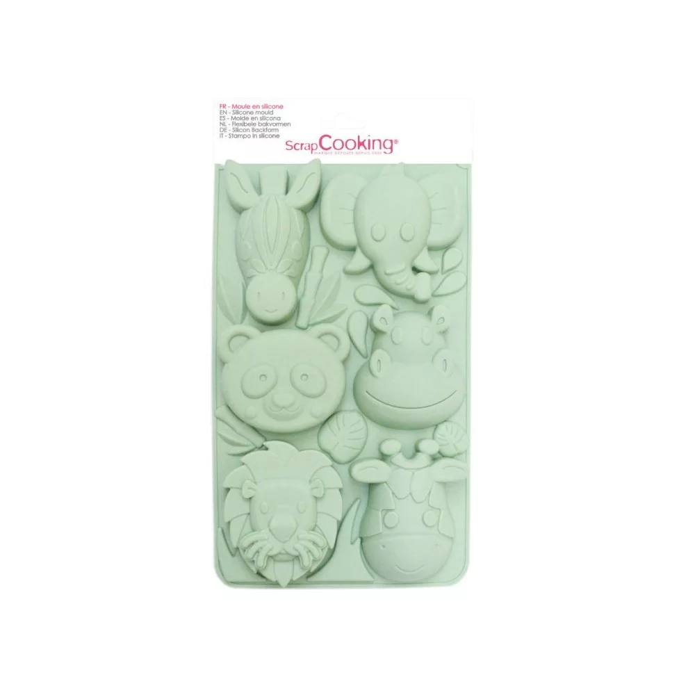 Ezzel a szilikonformával 6 dzsungelállatfej formájú süteményt készíthetsz: zebra, elefánt, panda, víziló, oroszlán, zsiráf.A ScrapCooking® egy egész sor professzionális minőségű, 100% platina szilikonformát tervezett csak az Ön számára.Anyag: 100% platina szilikon.Ultra rugalmas, tapadásmentes forma