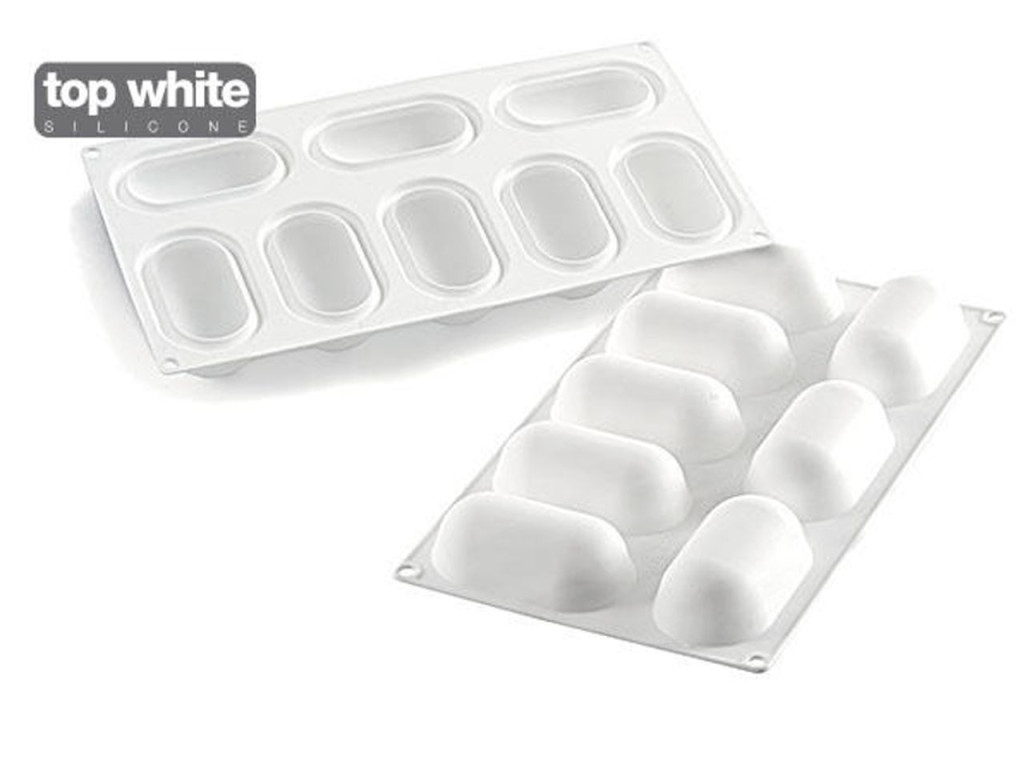 Prémium szilikon sütőforma párna alakú desszertekhez: 8 darab 80 ml-es üreg, -60°C-tól +230°C-ig használható, tapadásmentes felület, tökéletes mousse-okhoz és félre fagyasztott desszertekhez.