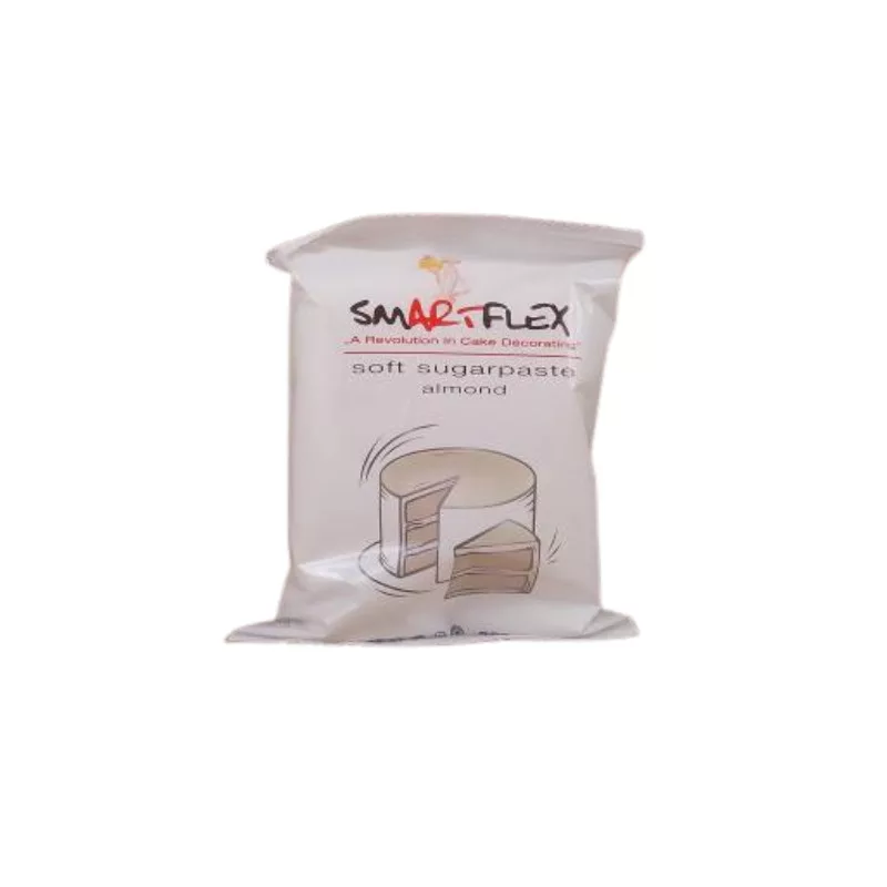Smartflex Soft Fehér fondant massza, mandula ízesítéssel, 250g. Puha, könnyen nyújtható tortaburkoló és dekorációs massza. Glutén- és laktózmentes, vegán.