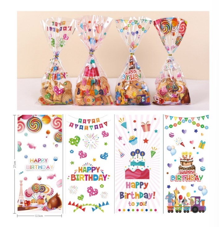Celofán süteményes zacskó Happy Birthday felirattal, 12 db. Ünnepi csomagolás szülinapi finomságokhoz. ????