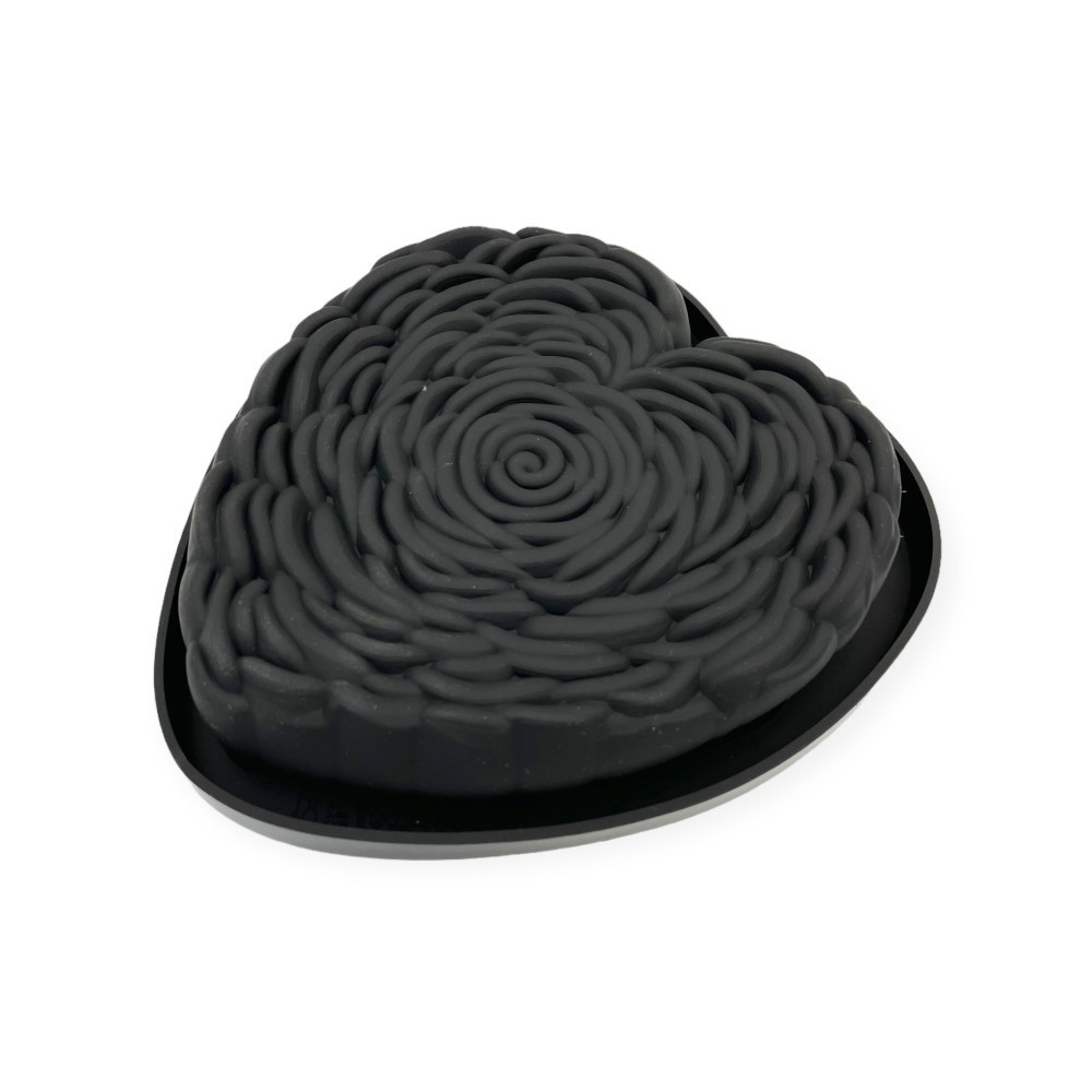 Szív alakú rózsa mintás torta forma, szilikon, 18,5×18,5 cm