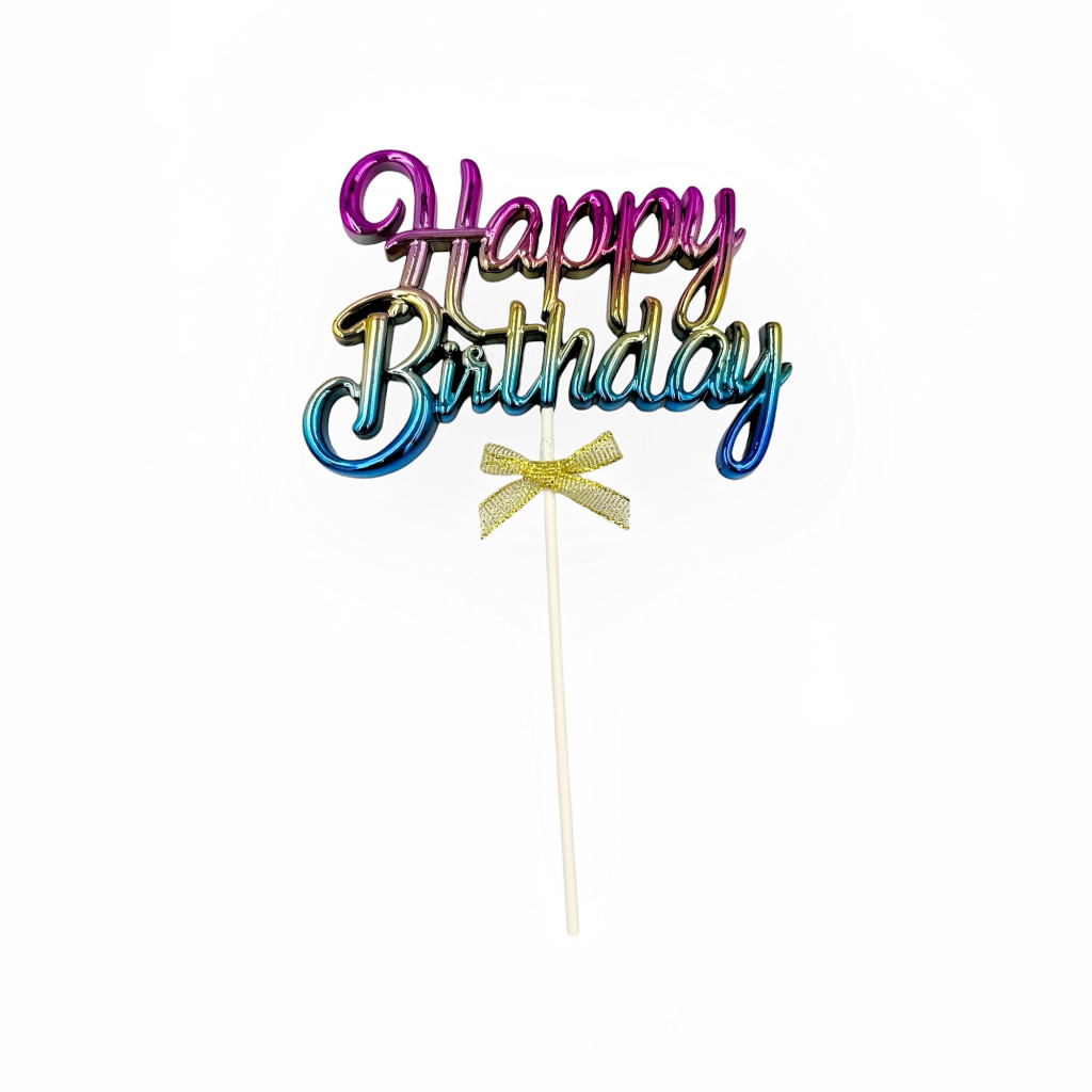 Torta beszúró, Happy Birthday, szivárvány színű, 115×80mm