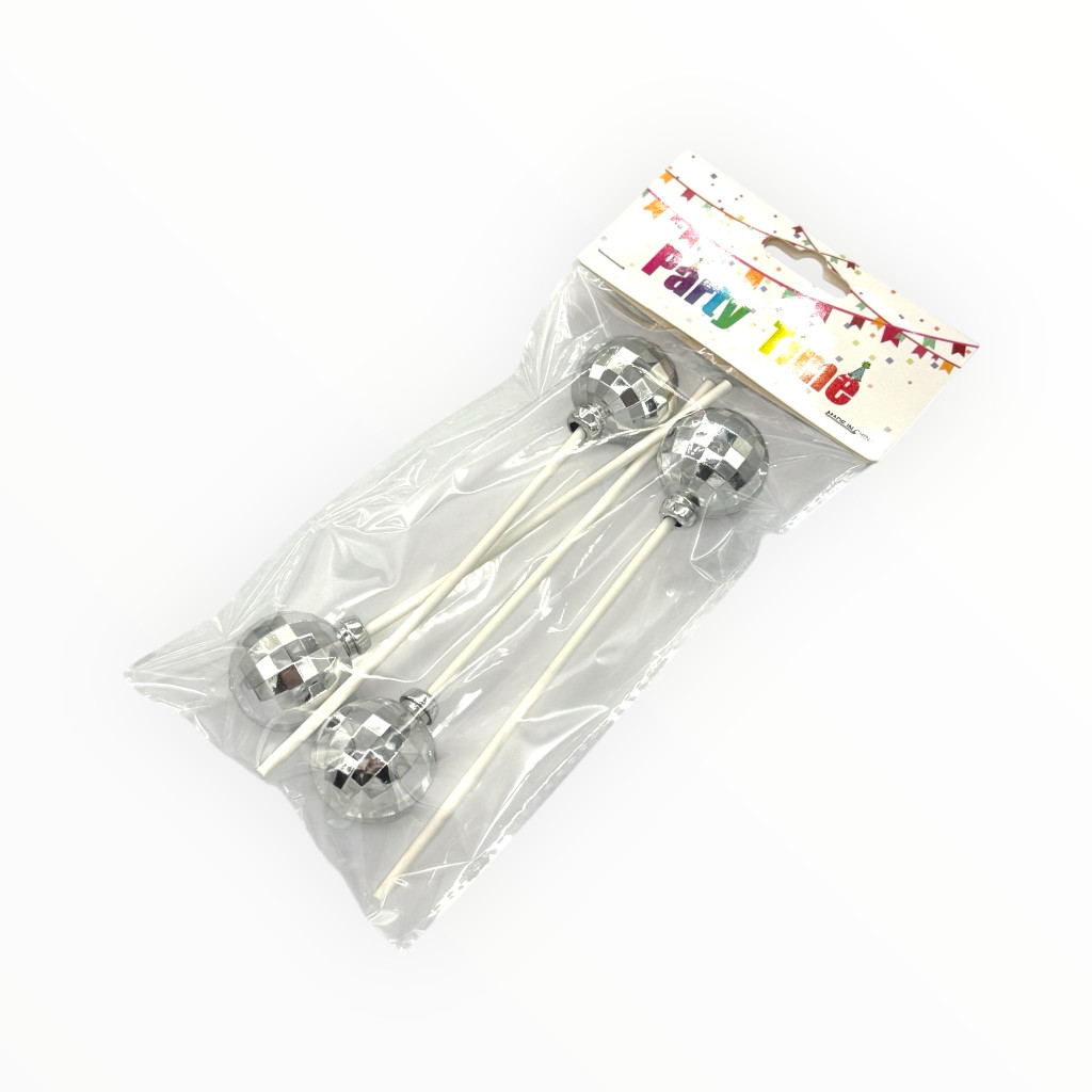 Csillogó, mini discogömb tortadekor, amely látványos kiegészítője lehet születésnapoknak, buliknak vagy bármilyen ünnepi alkalomnak. A könnyen beszúrható nyéllel rendelkező gömbök feldobják a desszerteket, tortákat vagy akár pohárkrémeket is.