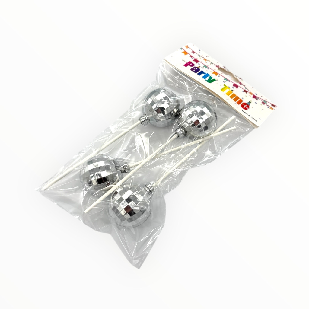 Torta beszúró, discogömb, 4cm, ezüst, 4db