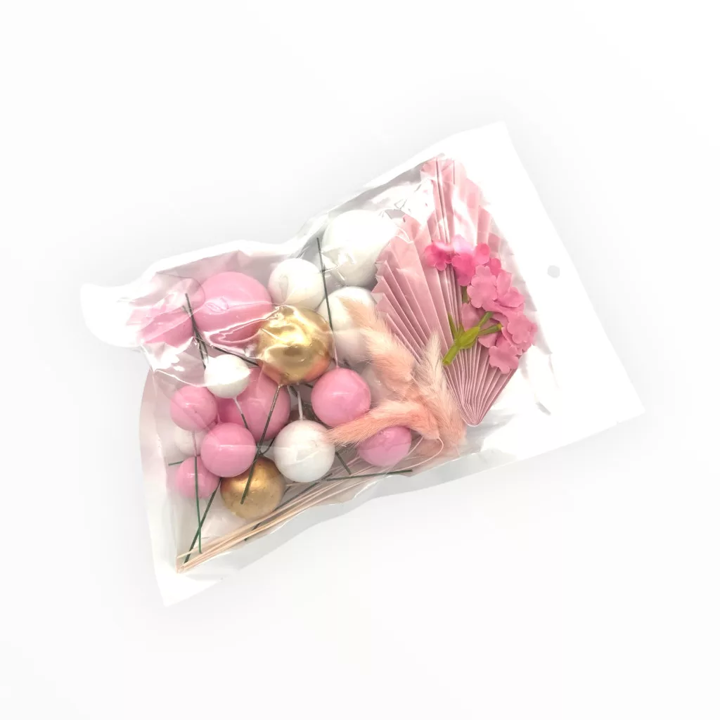 Torta beszúró szett, fehér-rózsaszín-arany,