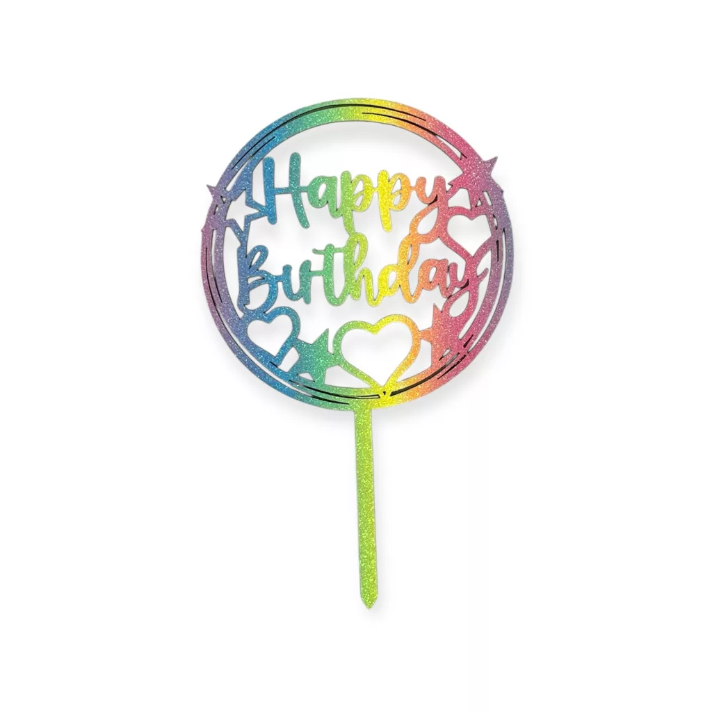 Kör alakú, csillámos Happy Birthday beszúró figyelemfelkeltő tortákhoz.