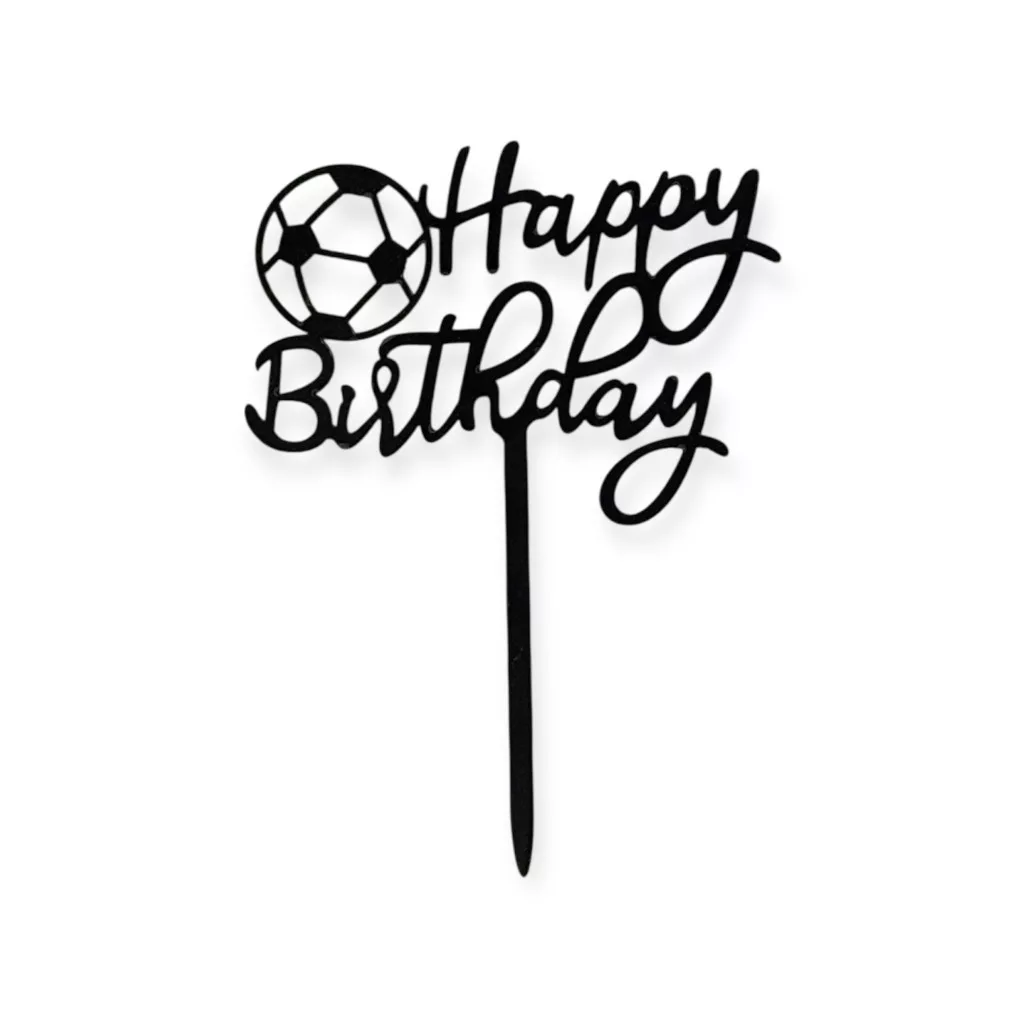 Tortadísz beszúró, Happy Birthday, football, sziluett, fekete