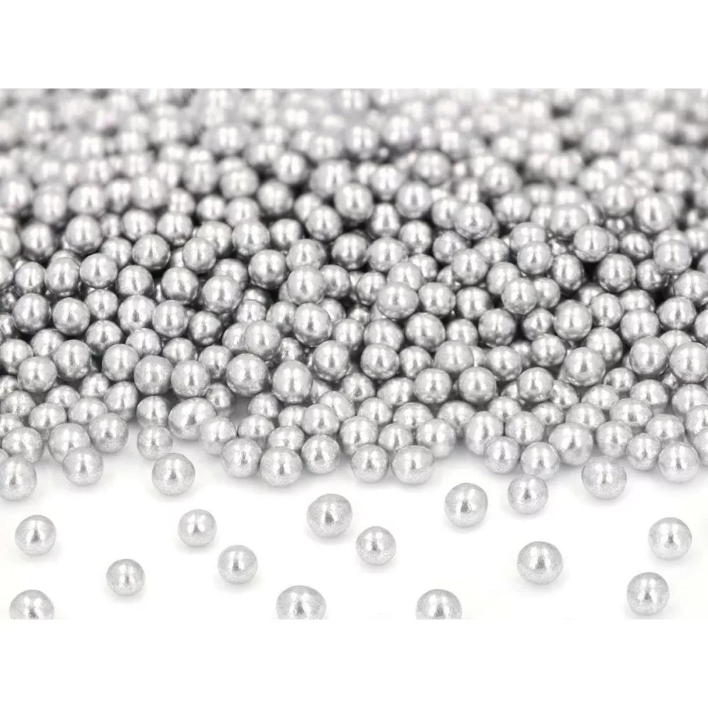 Elegáns, ezüst színű mini cukorgyöngyök torták, cupcake-ek és desszertek díszítéséhez. Kiváló választás ünnepi alkalmakra és különleges süteményekhez.