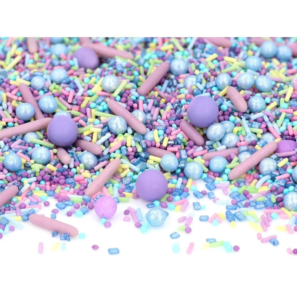 Lila és világoskék árnyalatú szórócukor keverék, amely tökéletes választás tengeri vagy sellő témájú torták és desszertek díszítésére.