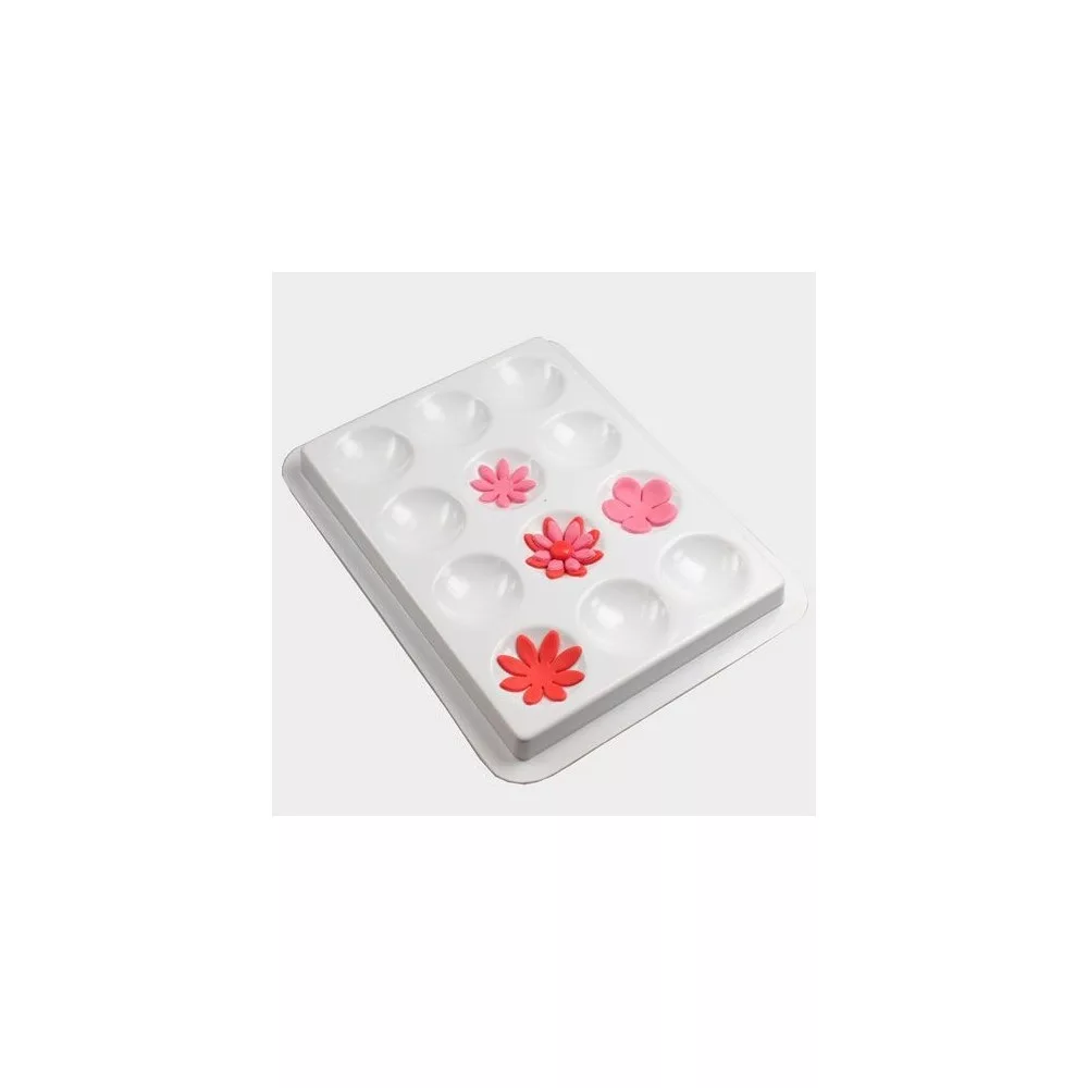 A modellező masszából készült levelek és virágok szárítása alkalmas tálca. A tálca 12 db csészét tartalmaz, egy tálca átmérője 3,5 cm.