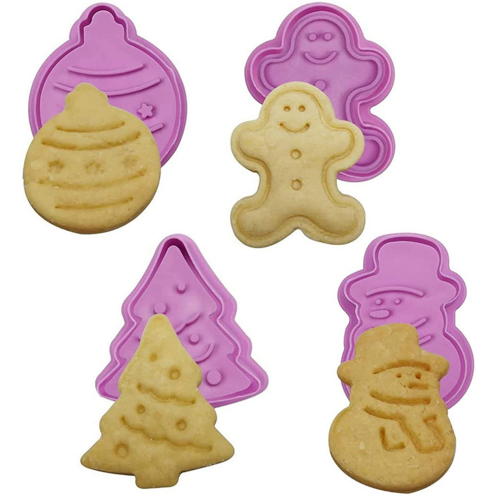 4 darabos rugós karácsonyi kiszúró: hóember, karácsonyfa, mézeskalács, gömb.A kiszúrók kiváló minőségű műanyagból készültek. A kiszúrók alkalmasak tészták, fondant és marcipán kiszúrására. A termék színe eltérő lehet.Hóember kiszúró mérete: 5 x 3,5 cm széles,karácsonyfa kiszúró mérete: 5 x 4,5 cm, mézeskalács kiszúró mérete: 5 x 4 cm, gömb kiszúró mérete:5 x 3,8 cm.