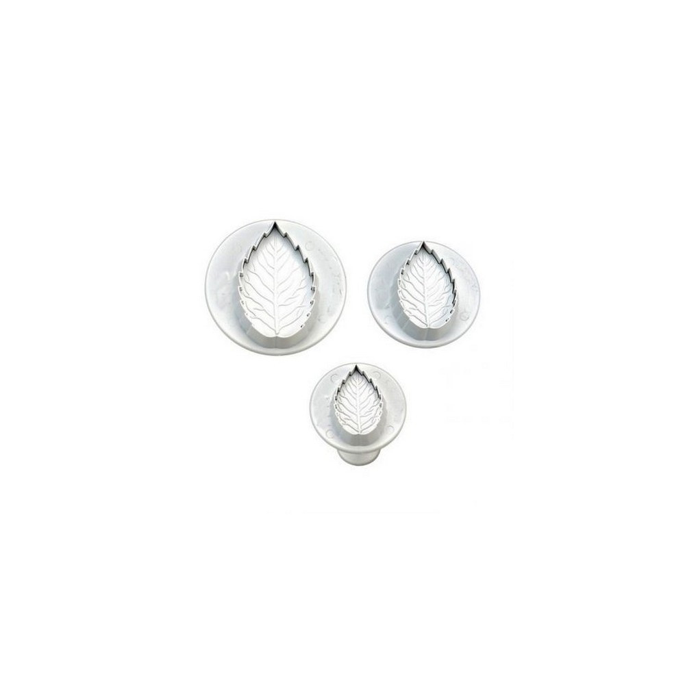 3 darabos levélalakú rúgós kiszúró.Alkalmas fondant,marcipán és tészták kiszúrására.Jó minőségű műanyagból készült.Méretei:2,5/3/4cm.Tisztítás: mosogatószeres vízzel.A termék színe eltérő lehet.