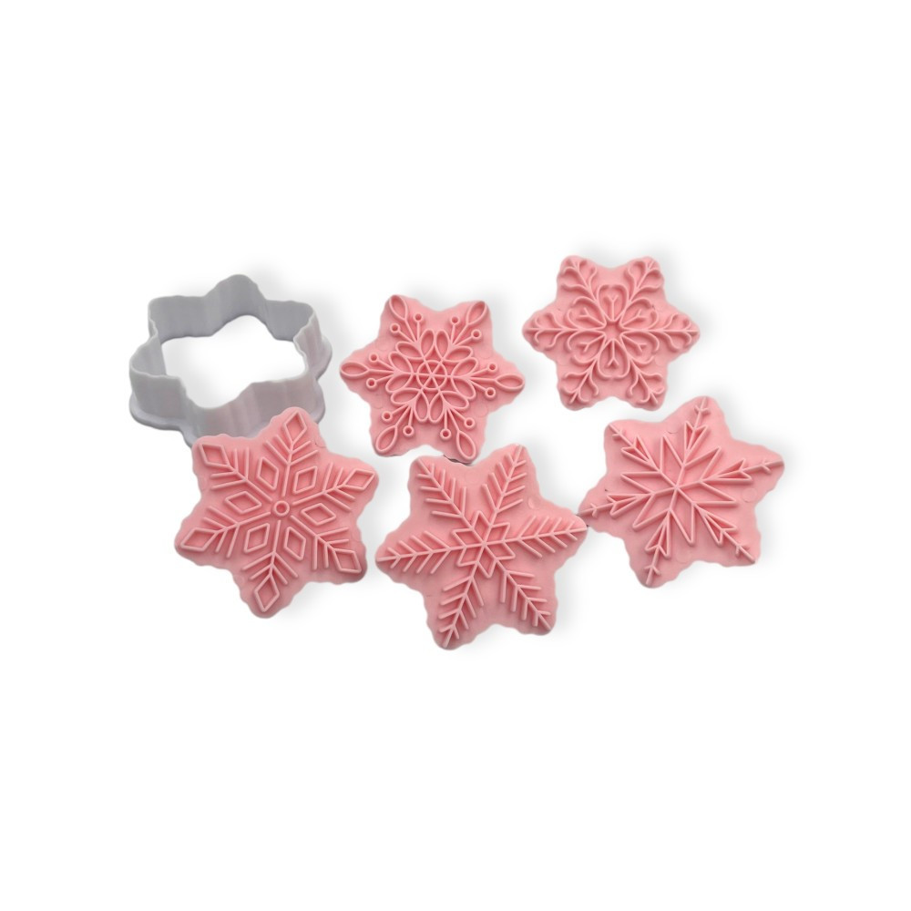 Kiszúró szett nyomdával, műanyag, hópelyhek, 5db - II