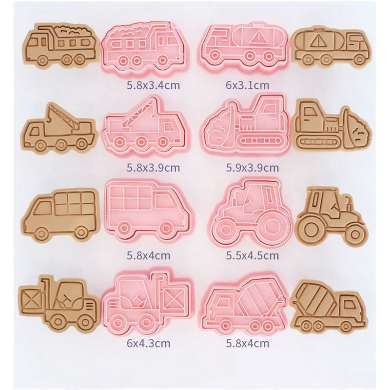 Kiszúró szett nyomdával, műanyag, jármű, 8db