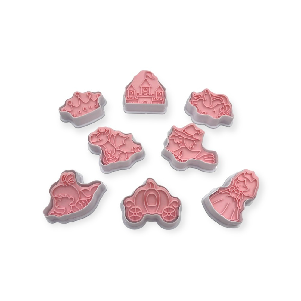 Ez a termék egy 8 darabos mesevilágot ábrázoló kiszúró készlet, amelyhez egy nyomdaszett is tartozik. A kiszúrók műanyagból készültek. A nyomdaszett segítségével megmintázhatja a kiszúrt kekszeket, így könnyedén elkészíthet egyedi és kreatív cukrászati termékeket. Egy remek kiegészítő mindazoknak, akik szeretnek kreatívak lenni és szeretik a dinokat, valamint akik szeretnének különleges és egyedi cukrászati termékeket készíteni. A kiszúró szettel pl. boszorkányt, hableányt, királylányt, sárkányt, unikornist, várat és koronát készíthetsz. A termék mosogatószeres vízzel tisztítható. A készlet Kínából származik, és a kiszúrók mérete a csatolt képen látható. A termék színe eltérő lehet.