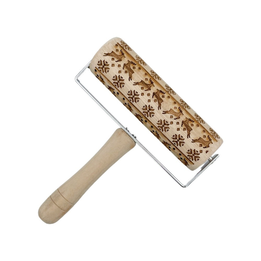 Az rénszarvas és karácsonyfa mintás nyeles sodrófa alkalmas tészta, fondant és marcipán díszítésére. A sodrófa kiváló minőségű faanyagból készült.Termék mérete: 175×150×50 mm. Tisztítás: mosogatószeres vízzel Származási hely: Kína