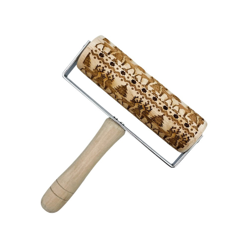 Nyeles nyújtófa, rénszarvas és karácsonyfa, fa, 15×18 cm
