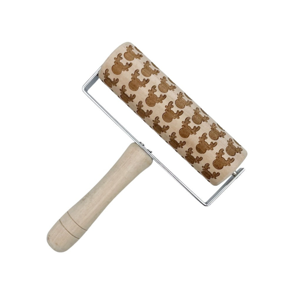 Nyeles nyújtófa, rénszarvas, fa, 15×18 cm