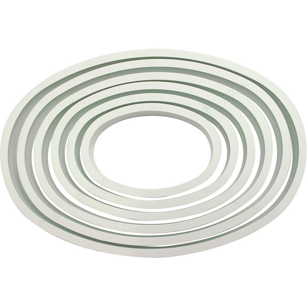 6 darabos ovális alakú kiszúró készlet kiváló minőségű műanyagból készült. A kiszúrók alkalmasak tészták, fondant és marcipán kiszúrására. A termék színe eltérő lehet.A kiszúrók méretei:- 4,6x4,6 cm, 6,2x6,2 cm, 8x8 cm, 9,5x9,5 cm, 11x11 cm, 12,5x12,5 cm.