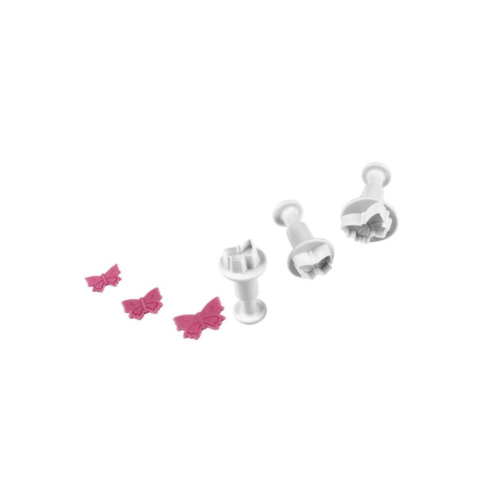 A pillangó alakú rúgós kiszúró szett kiváló eszköz a fondant és modellező massza formázásához. A szett 3 darabból áll, így többféle méretű és mintázatú pillangókat készíthetsz, hogy elkápráztasd süteményeid és desszertjeid megjelenését. Tisztítás mosogatószers vízzel. Származási hely: Kína. Mérete: 3cm, 2,5 cm, 2cm.