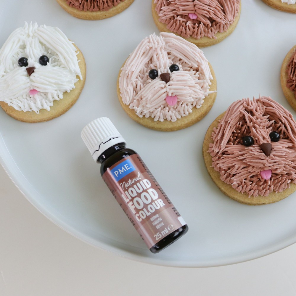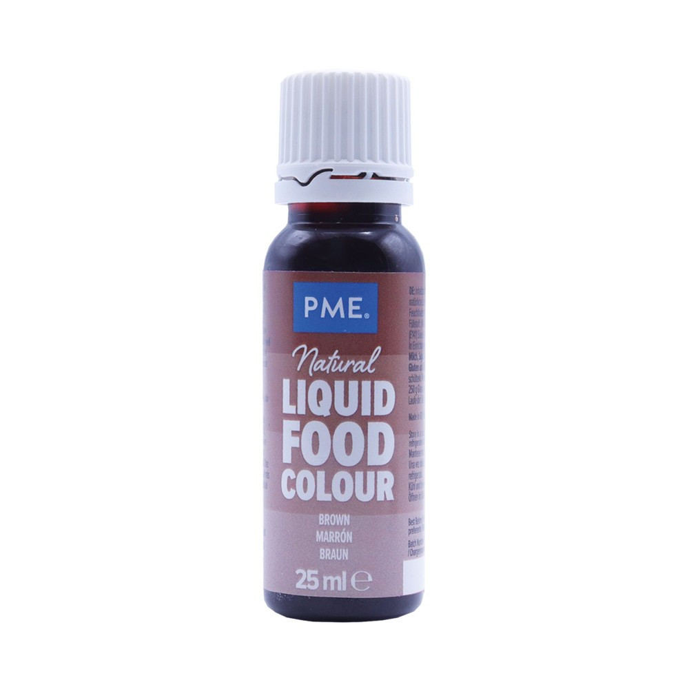 Ez a PME barna színű ételszínezék kizárólag természetes színezéket tartalmaz. A 250 gramm cukormázhoz legfeljebb 1 teáskanálnyit szükséges használni. Ez az ételfesték marcipánhoz és fondanthoz is alkalmas. A szín intenzitása idővel csökken. Ez az ételfesték ezért kevésbé alkalmas olyan munkánkhoz, mint például a modellezés. Felbontás után tartsa hűtőben, és használat előtt rázza fel. Összetevők : Glicerin E422, deionizált víz, növényi szén E153, cochineal E120, riboflavin-foszfát E101(ii), nátrium-réz-klorofillin E141(ii). Allergének: dióféléket tartalmazhat. Az élelmiszer-színezék alkoholmentes. Gluténmentes. Szavatossági ideje a felbontás után körülbelül 6 hónap múlva jár le. Kb. 25 grammot tartalmaz.