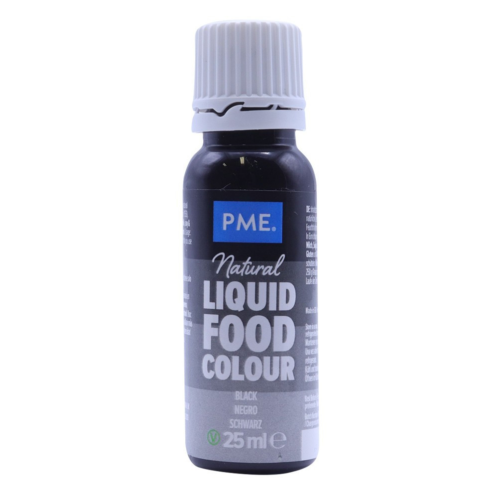 Ez a PME fekete ételszínezék kizárólag természetes színezéket tartalmaz. A 250 gramm cukormázhoz legfeljebb 1 teáskanálnyit szükséges használni. Ez az ételfesték marcipánhoz és fondanthoz is alkalmas. A szín intenzitása idővel csökken. Ez az ételfesték ezért kevésbé alkalmas olyan munkánkhoz, mint például a modellezés. Felbontás után tartsa hűtőben, és használat előtt rázza fel. Összetevők : glicerin E422, színezék: növényi korom E153. Allergének: dióféléket tartalmazhat. Az élelmiszer-színezék alkoholmentes. Alkalmas vegetáriánusok és vegánok számára. Szavatossági ideje a felbontás után körülbelül 6 hónap múlva jár le. Kb. 25 grammot tartalmaz.