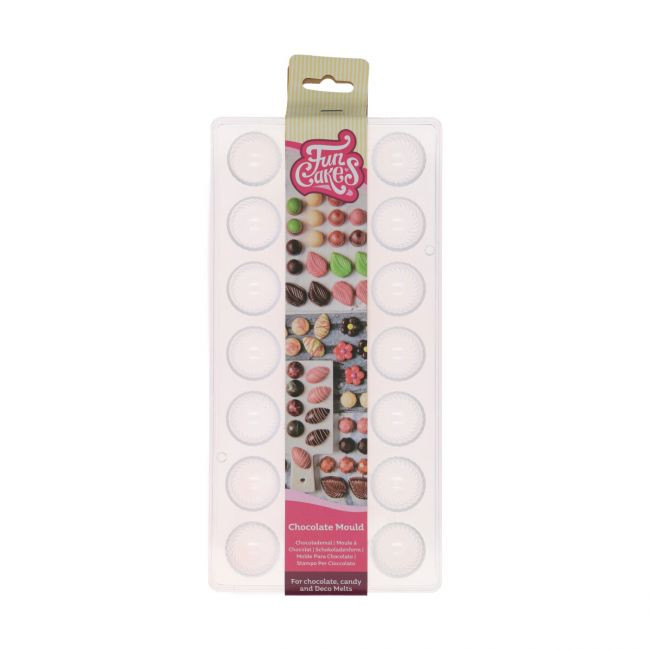 A FunCakes bonbon forma, polikarbonát, örvény, 27×14 cm segítségével gyönyörű, részletgazdag örvénymintás csokoládékat készíthetsz. A strapabíró, átlátszó forma ideális temperált csokoládéhoz és Deco Meltshez. Könnyen használható, hőálló -20 °C és +80 °C között, BPA-mentes. Mosogatógépben nem mosható.