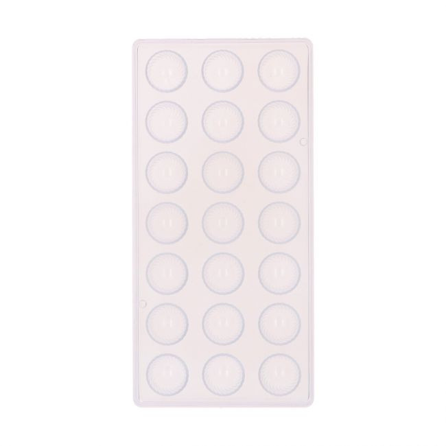 A kiváló minőségű, átlátszó polikarbonát forma extra merevséget biztosít, ami lehetővé teszi a csokoládék szép fényét és könnyű kifordítását. Használható temperált csokoládéval és Deco Melts bevonóval is, így sokoldalúan bevethető a csokoládékészítés során.