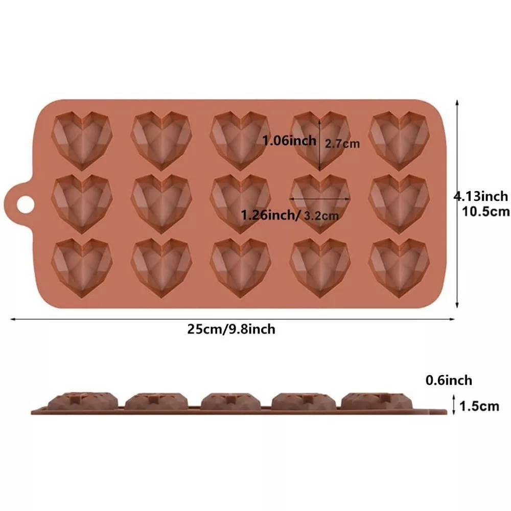 Bonbon forma, szilikon, gyémántszív, 15 db-os , 20,5×10,5 cm