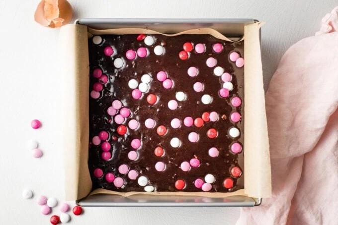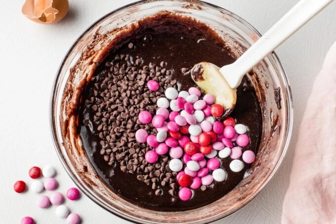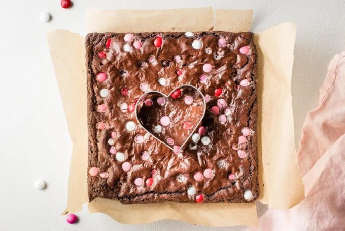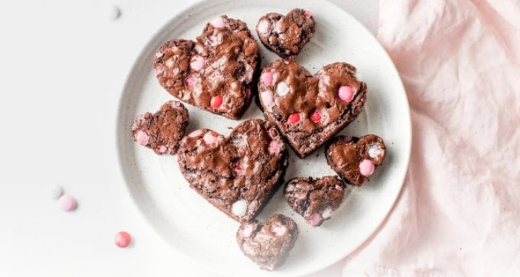 Elhoztuk a negyedik Valentin-napi receptünket! ❤️🍫 Ezek a szív alakú brownie-k nemcsak csábítóan csokisak, hanem elképesztően finomak is! A belül puha, kívül enyhén roppanós brownie tésztája tökéletes harmóniában van az olvadó csokoládécseppekkel és a színes M&M drazsékkal. Az aranyos szívforma pedig igazán különlegessé teszi ezt az édességet! Egy egyszerű, mégis lenyűgöző desszert, amivel garantáltan édesebbé varázsolhatod a Valentin-napodat!