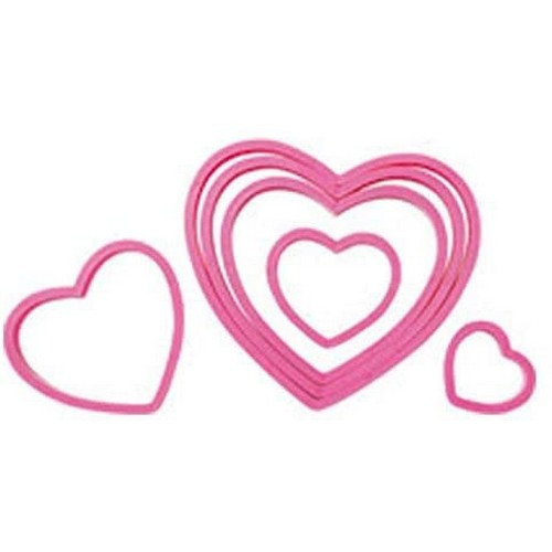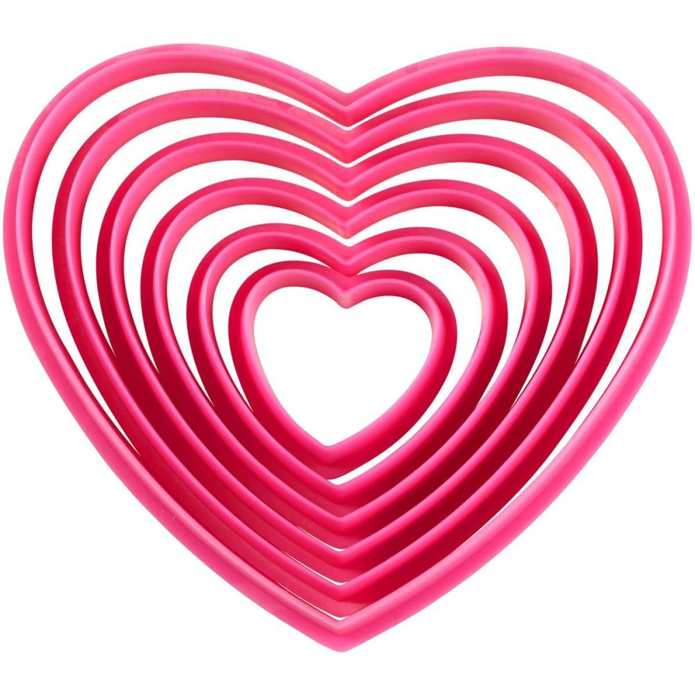 6 darabos szív alakú kiszúró készlet kiváló minőségű műanyagból készült. A kiszúrók alkalmasak tészták, fondant és marcipán kiszúrására. A termék színe eltérő lehet.A kiszúrók átmérői: 3 cm, 4,5 cm, 6,5 cm, 8 cm, 9,5 cm, 10,5 cm.