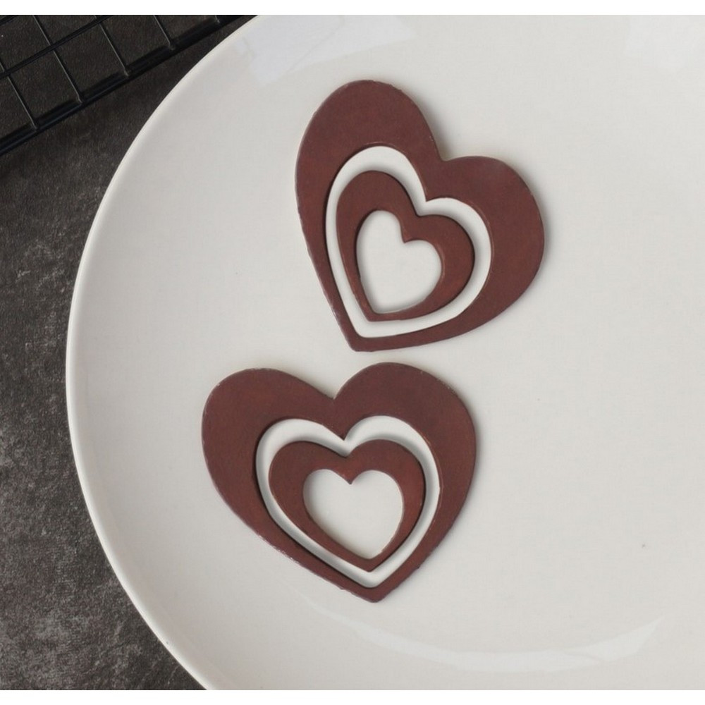 A szív alakú vékony szilikonlap tökéletes eszköz a csokoládédíszek készítéséhez. A forma segítségével egyszerre akár 8 db különböző nagyságú szív alakú csokoládédísz is elkészíthető, hogy különlegessé tegye süteményeidet vagy desszertjeidet. Tisztítás mosogatószeres vízzel. Származási helye: Kína. Mérete: 19×11,5 cm. Csillag mérete (átmérő): 5,5, cm