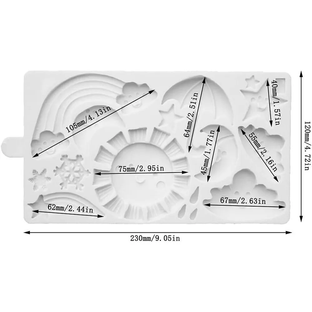 Szivárvány, felhő, nap fondant forma, szilikon, 23×12 cm