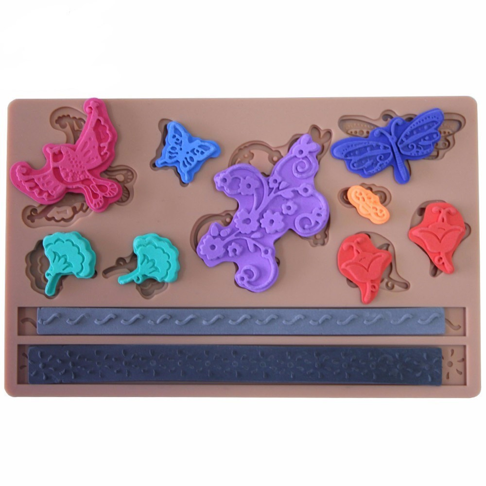 Virág és madár fondant forma, szilikon, 18,5×11,5 cm