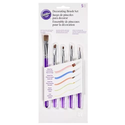 Fesd meg saját tortáid és sütijeid részleteit a Wilton 5 db-os dekorációs ecsetkészlettel! Élelmiszer-biztonságos, puha sörtéjű ecsetek torták, cupcake-ek és sütemények díszítéséhez.